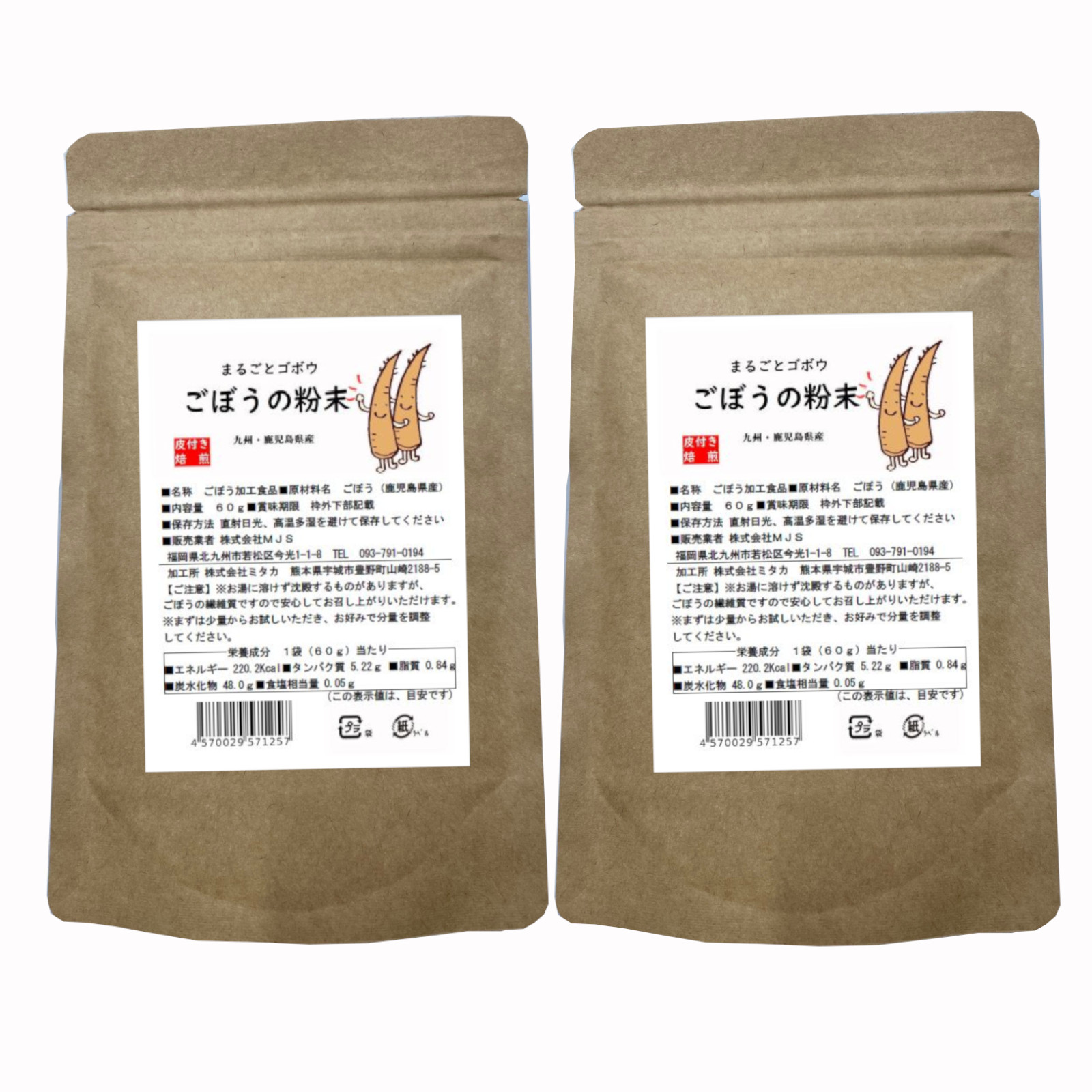 まるごとゴボウ こぼうの粉末 ごぼう茶 パウダー 粉 九州 鹿児島県産 皮付き焙煎 ノンカフェイン 2袋 ・内容量:60g/袋・ごぼうの皮には栄養成分がたっぷり含まれています。だから皮のままを焙煎してパウダーにしています。・まるごと、粉にしていますから、ごぼうの栄養成分をまるごと摂取できます。捨てるところはありません。・茶葉のように煮だす必要はありません。使いたい時に使いたいだけご使用いただけます。・水溶性と不溶性食物繊維がたっぷり。だからおなかも快調です。